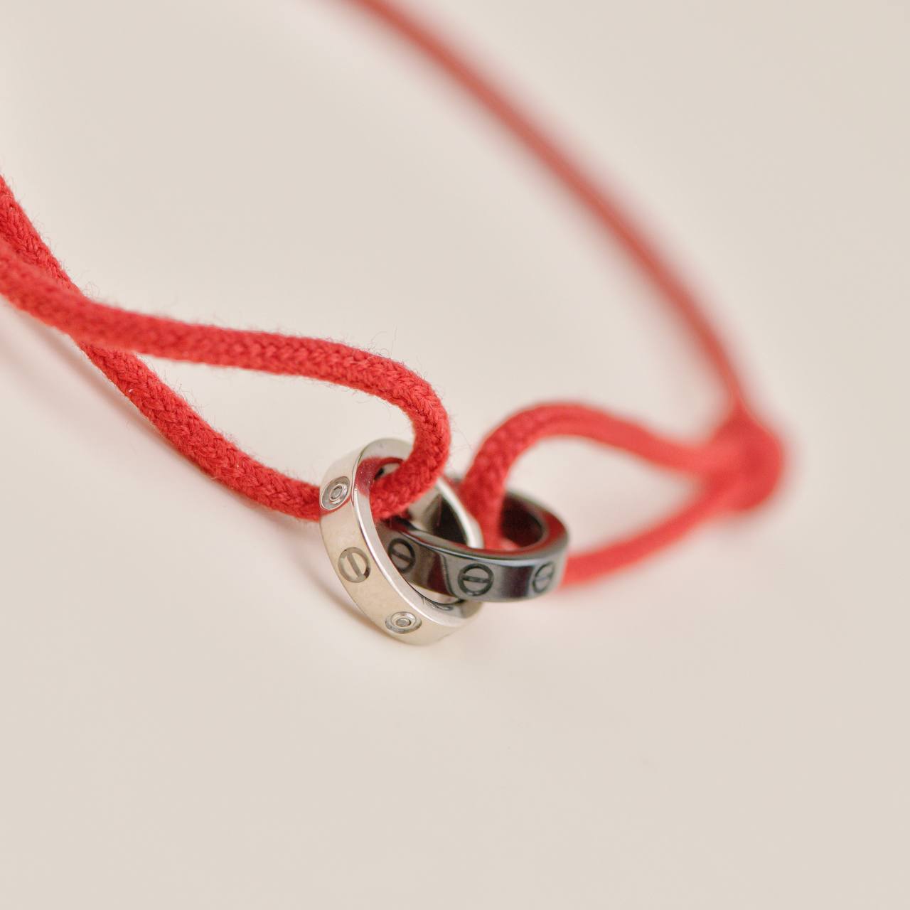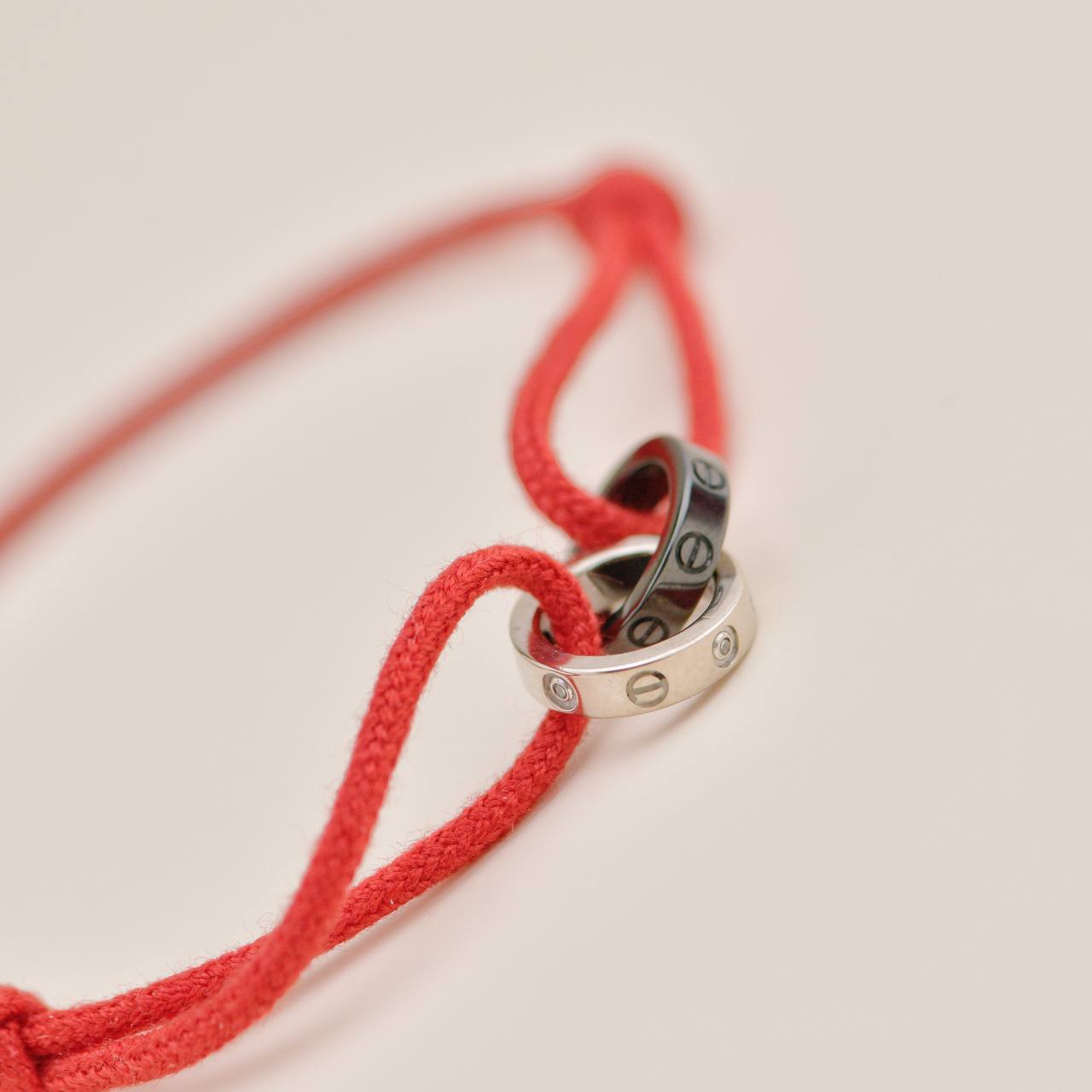 Cartier Love Diamond 18k White Gold Sèvres Porcelain Red Cord Bracelet