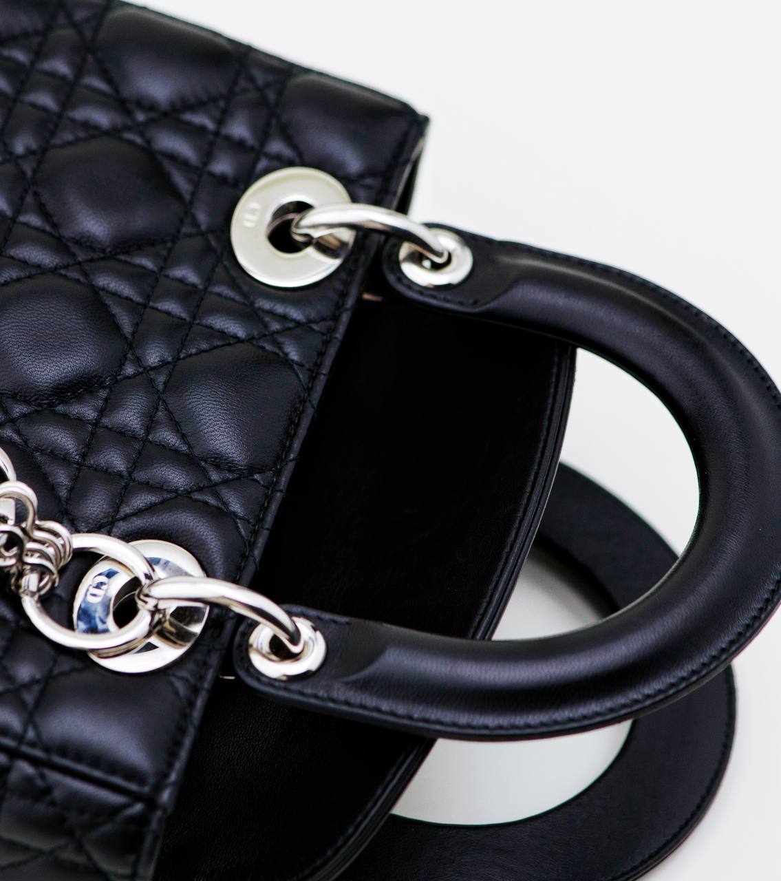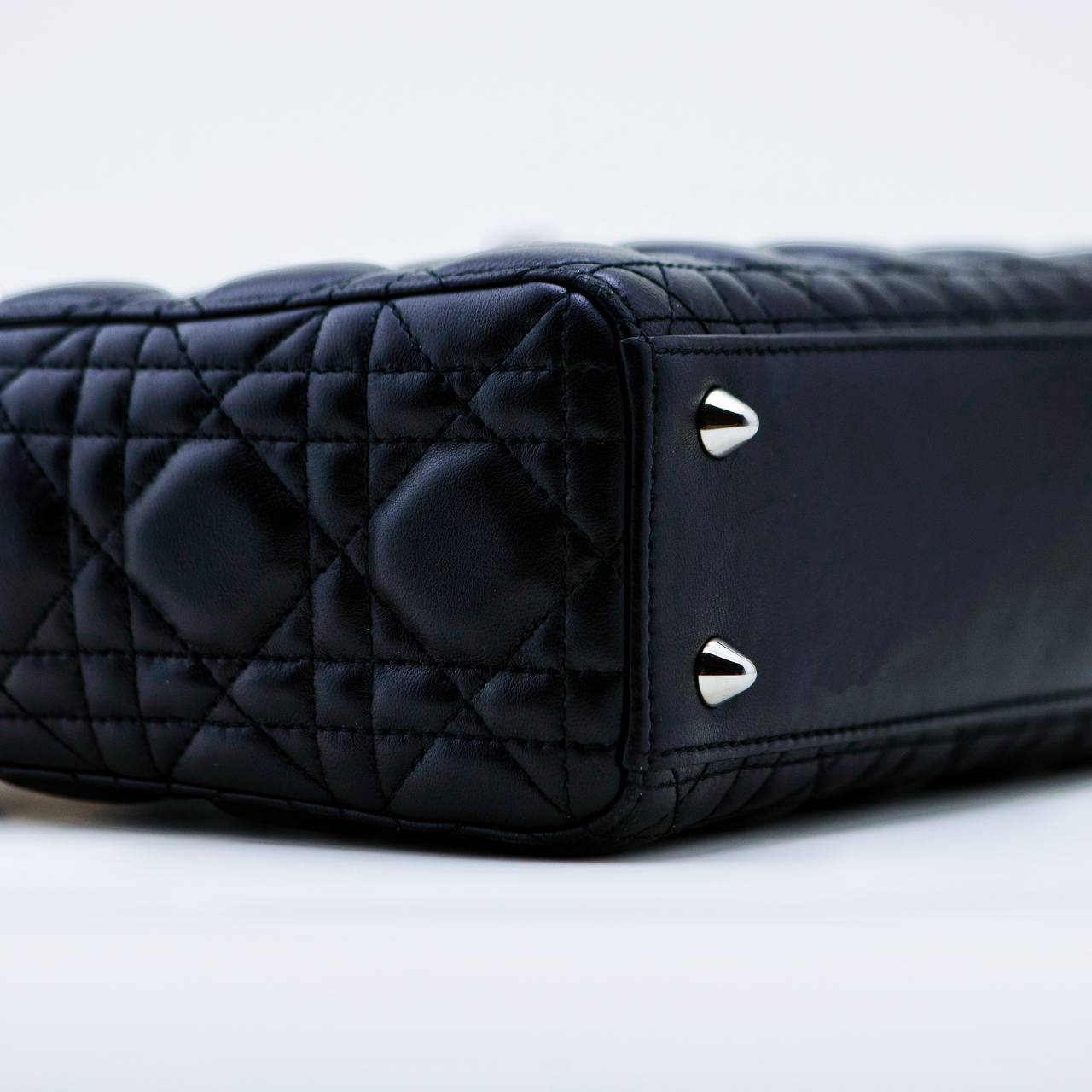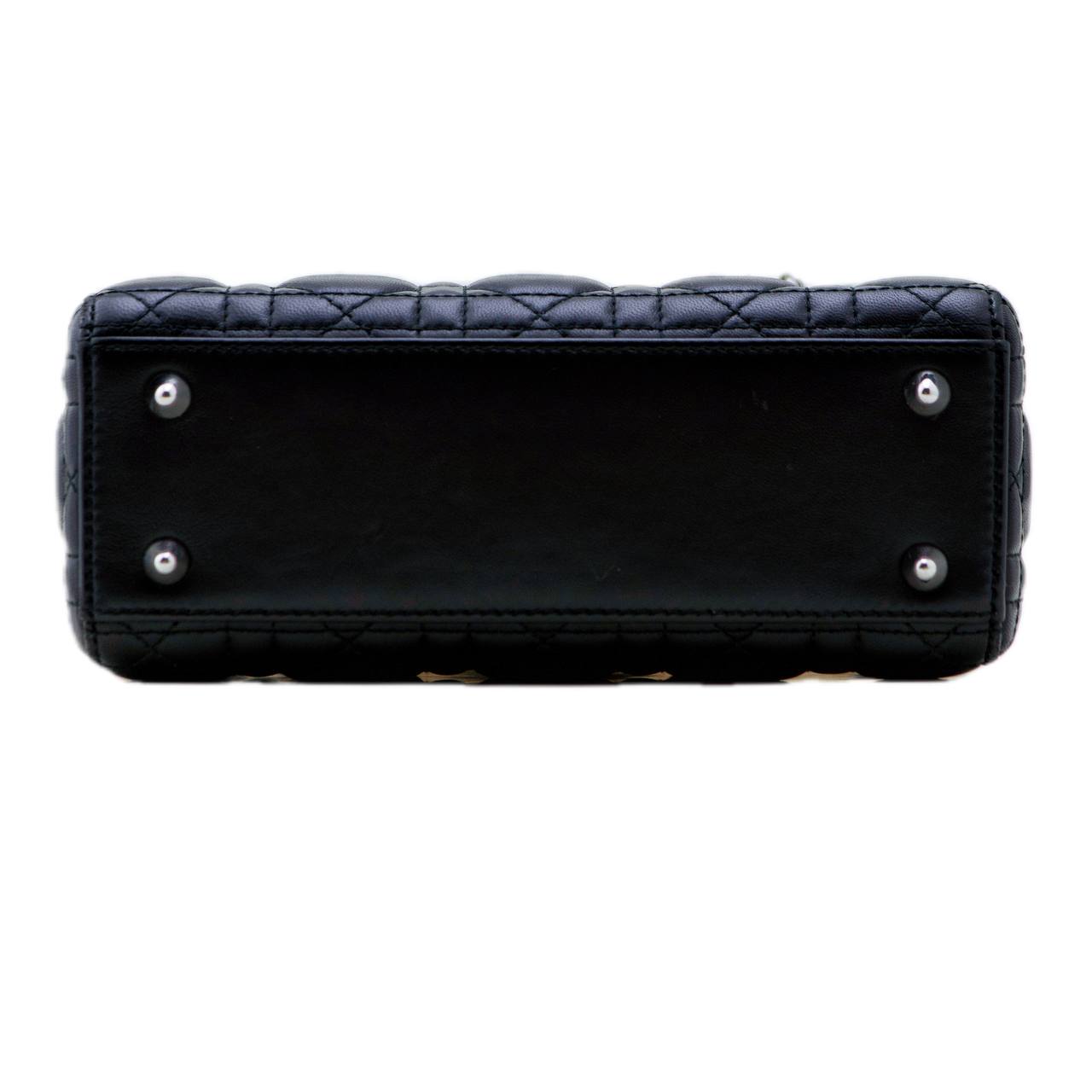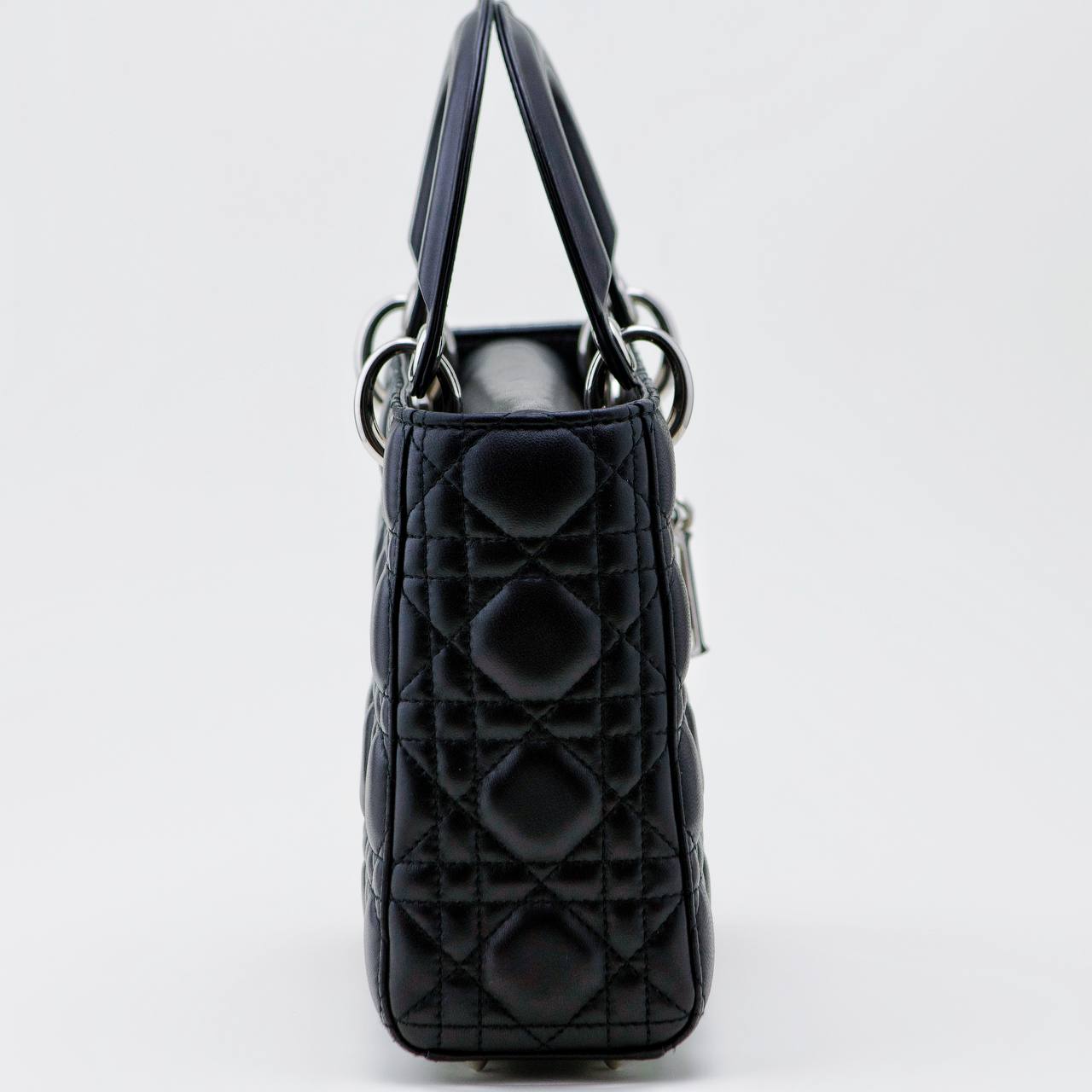 Dior Lady Dior Black Lambskin Leather Silver Hardware Handbag Small Size