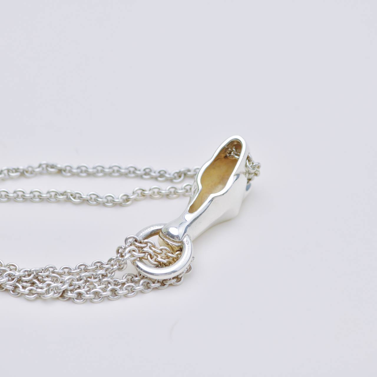 Authentic preowned Hermès Galop Horse Motif Necklace, Large Model. Crafted in sterling silver it showcases the Maison’s iconic equestrian-inspired design, this bold yet refined pendant captures the elegance and movement of the horse — a tribute to Hermès’ heritage. A highly sought-after piece of luxury designer jewellery, perfect as a statement necklace or layered for a contemporary look within a curated Hermès collection.