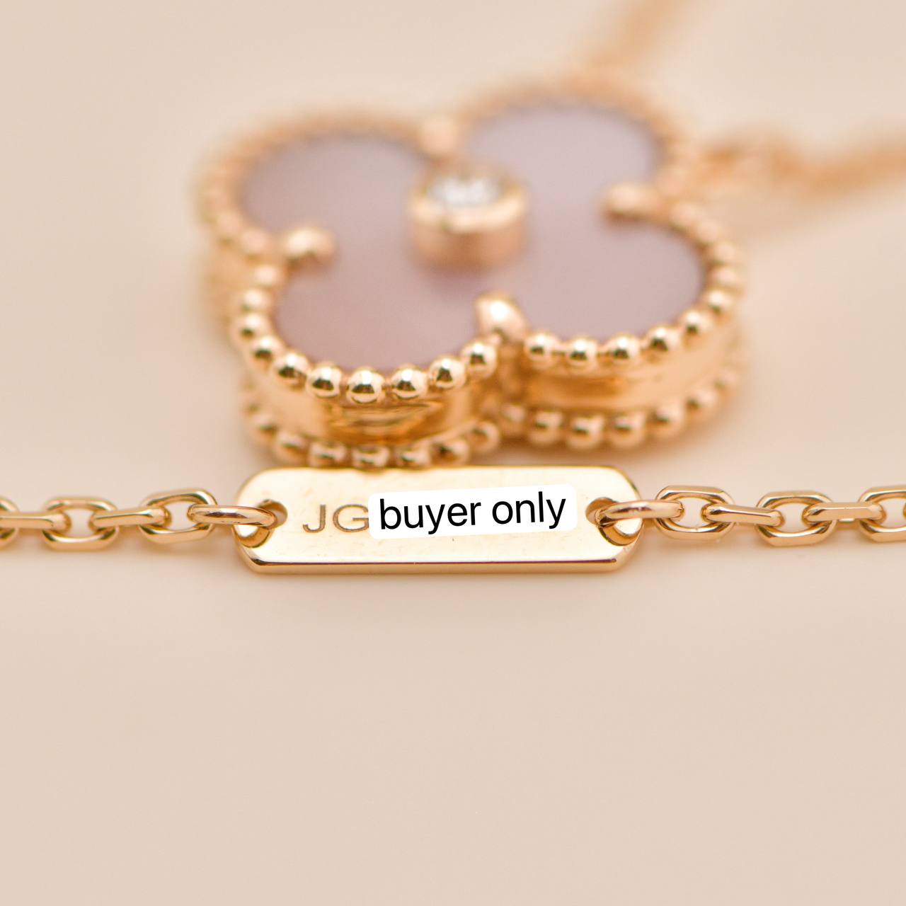 Brand New Authentic Full set Van Cleef & Arpels 2025 Holiday Pendant Pink Mother of Pearl 18K Rose Gold.