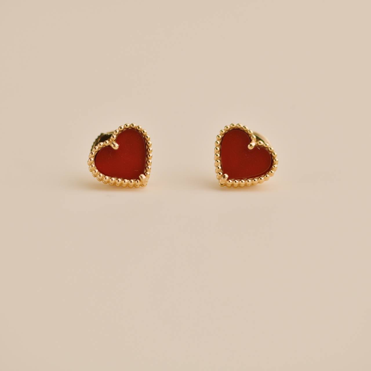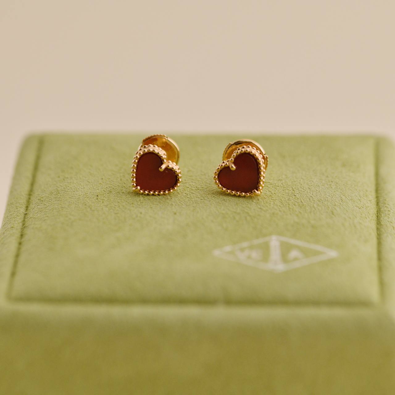 Van Cleef & Arpels Sweet Alhambra Carnelian Heart 18K Rose Gold Earrings
