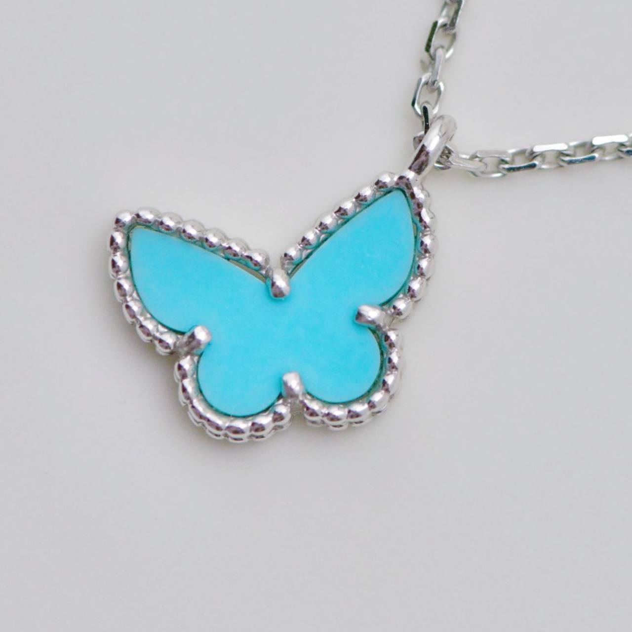 Van Cleef & Arpels Sweet Alhambra Turquoise Butterfly 18K White Gold Necklace
