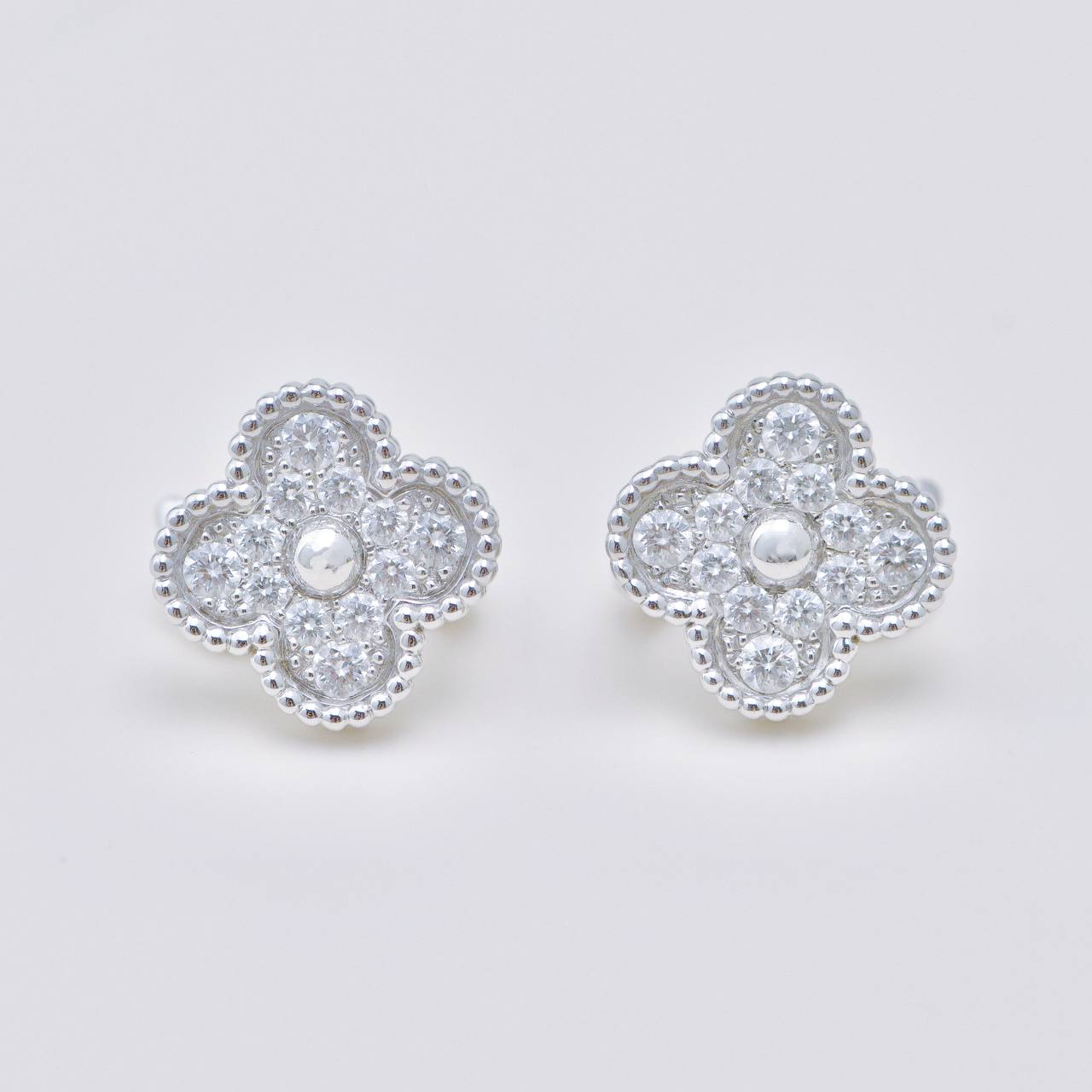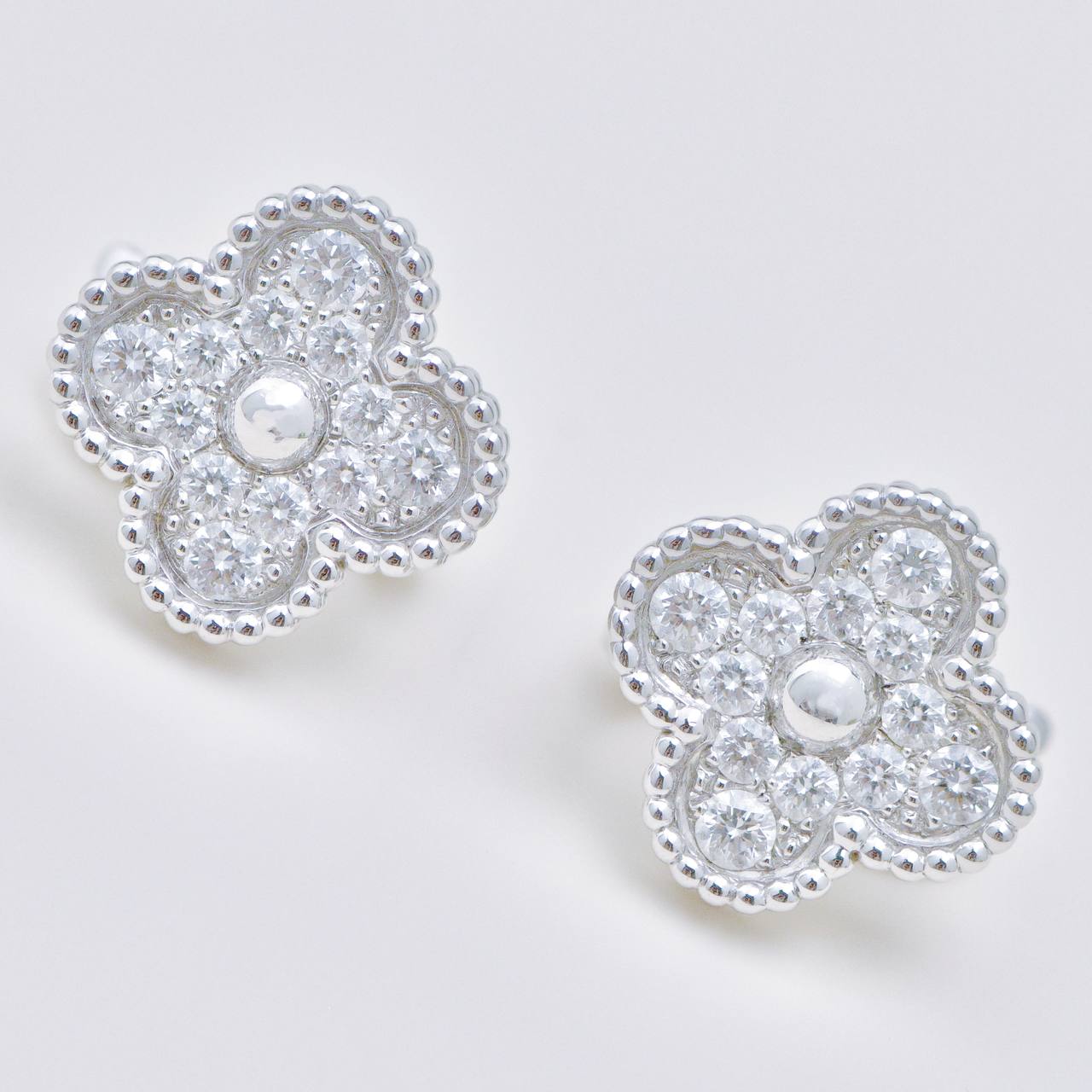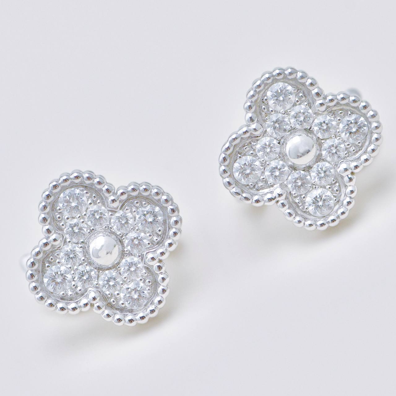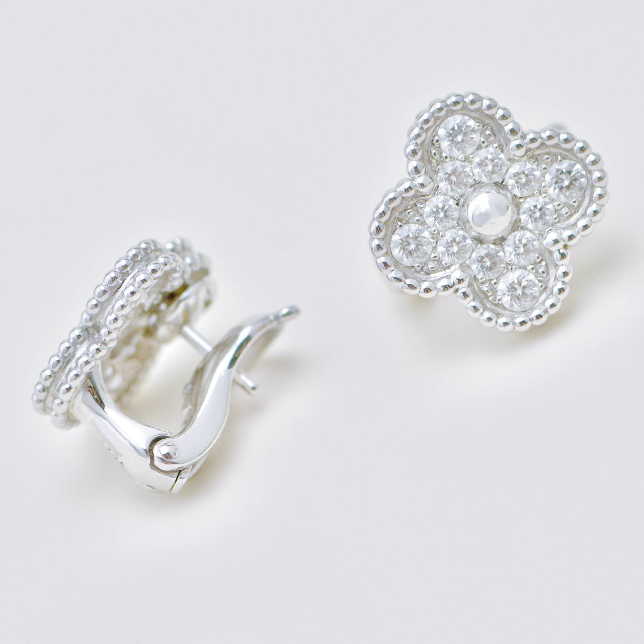 Van Cleef & Arpels Vintage Alhambra Pave Diamond Earrings 18K White Gold