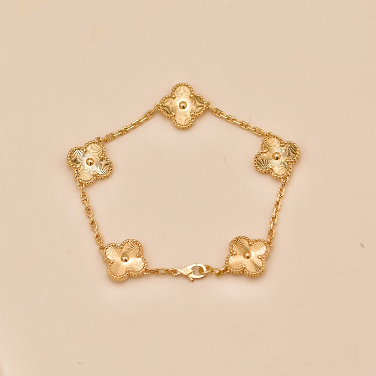 Van Cleef & Arpels Vintage Alhambra Guilloché 5 Motifs Bracelet 18K Yellow Gold