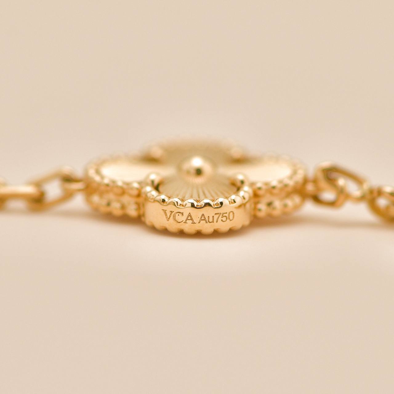 Preloved Excellent Condition Van Cleef Vintage Alhambra Guilloché 5 Motifs 18K Yellow Gold Bracelet