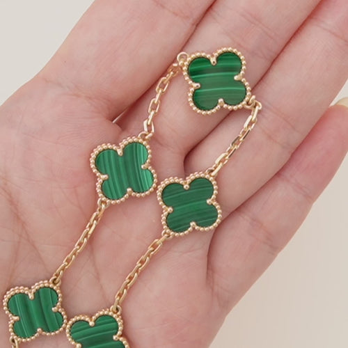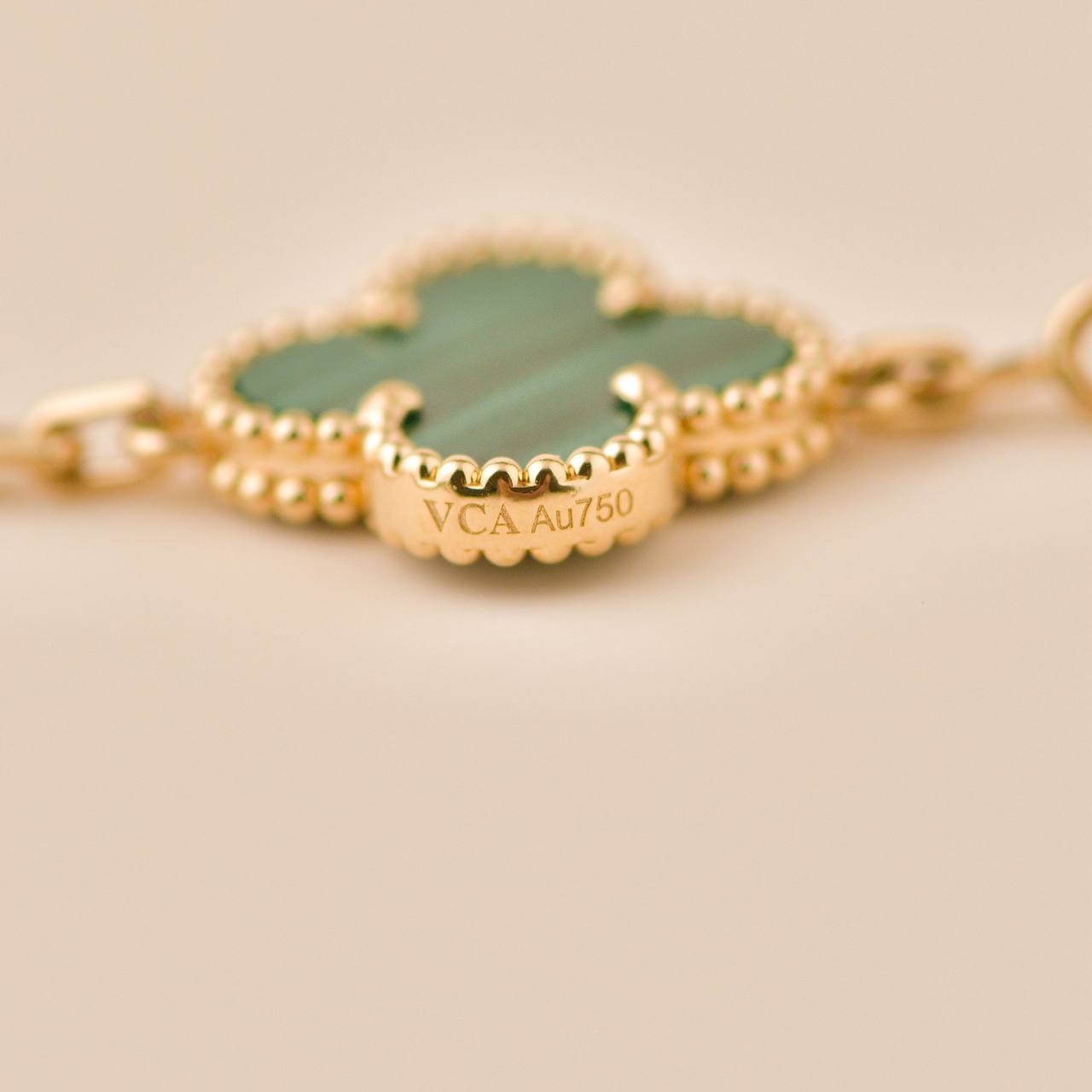 Preloved Van Cleef & Arpels Vintage Alhambra 5 Motif Malachite 18K Yellow Gold Bracelet – iconic Alhambra design, rich green malachite stones, 18K yellow gold, authentic VCA jewellery, timeless luxury bracelet, authentic Van Cleef