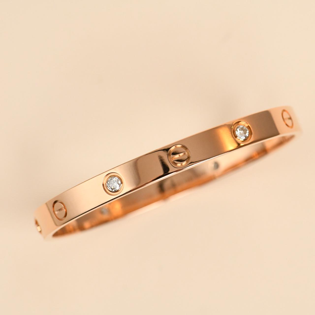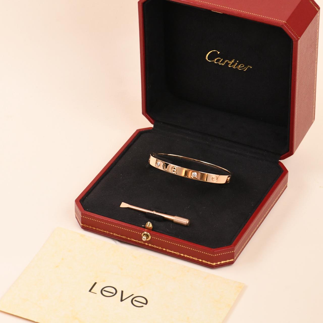 Cartier Love Bracelet Classic Model 4 Diamond 18K Rose Gold Size 17
