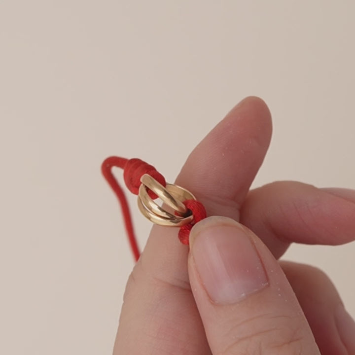 Preloved Authentic Full Set Cartier Trinity Red Silk Cord Bracelet 18K Rose Gold. Perfect for stacking, layering, or elevating an everyday jewellery collection.