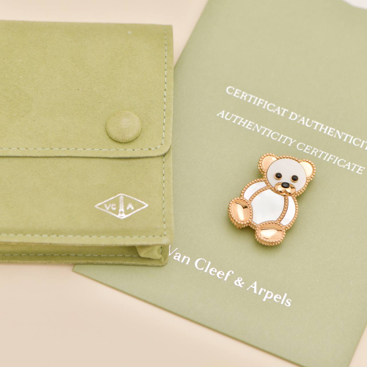 Van Cleef & Arpels Lucky Animals Teddy Bear Clip Mother of Pearl Onyx 18K Rose Gold