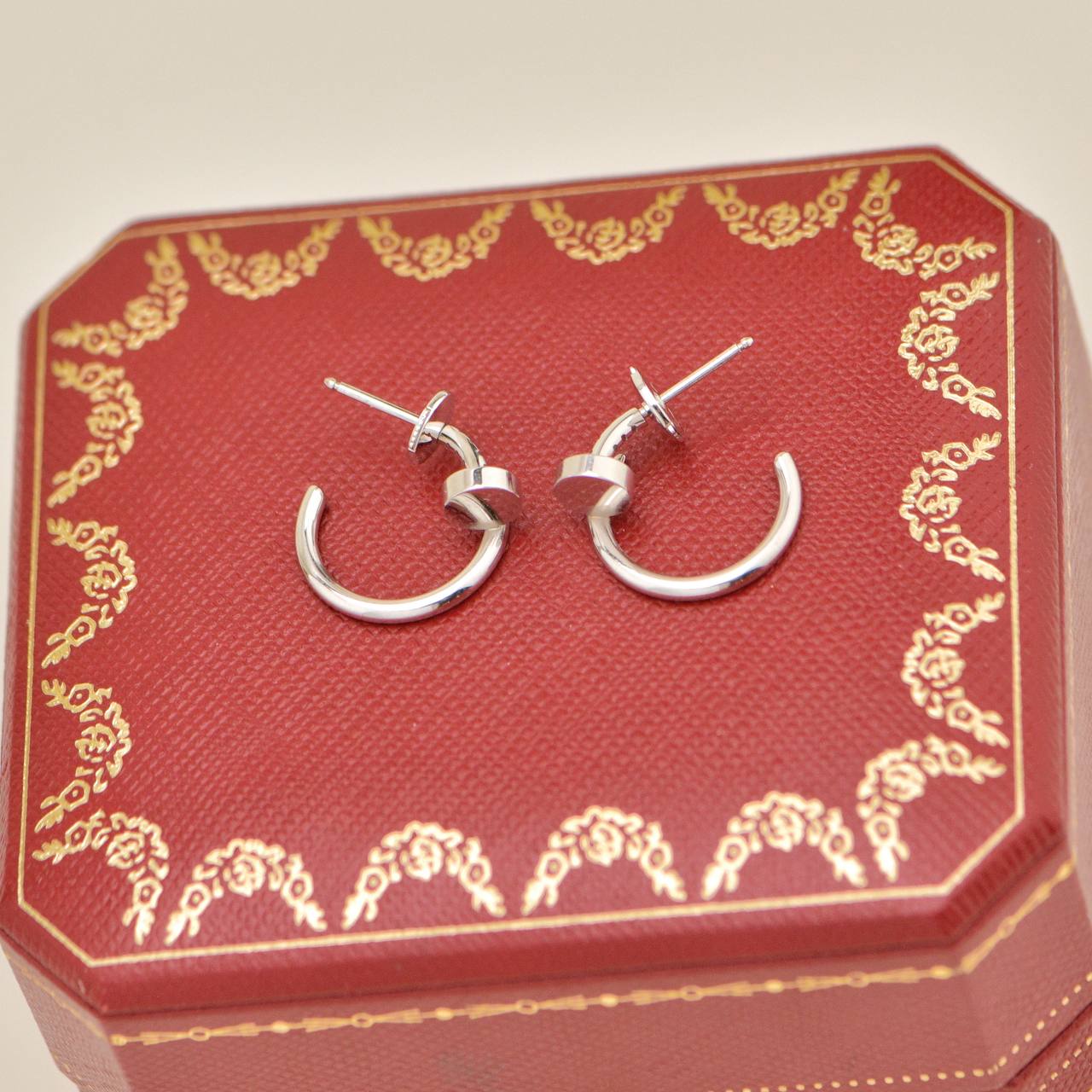 Full set Cartier Juste un Clou Small Hoop Earrings 18K White Gold. A classic and modern design, perfect for everyday wear.