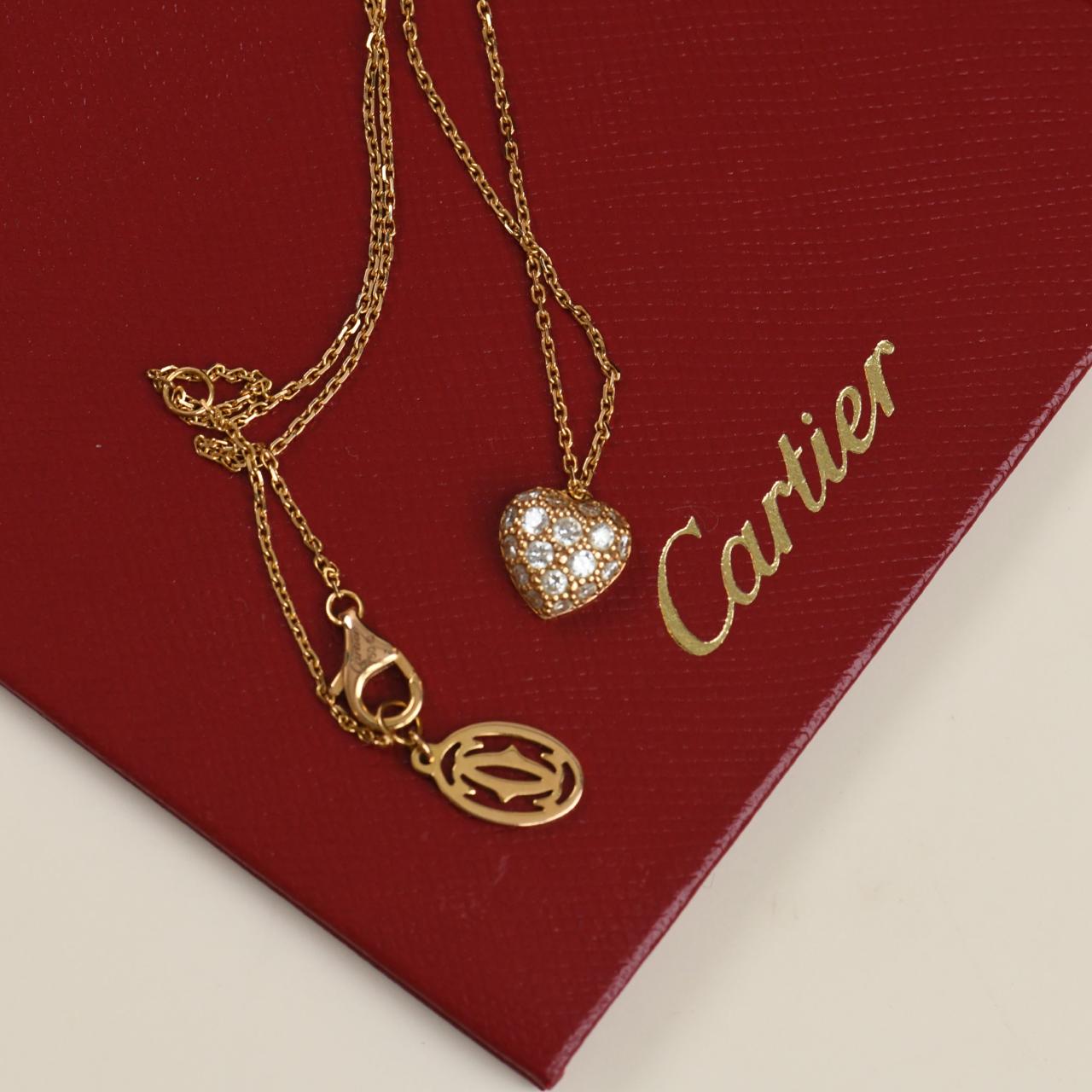 Preloved Authentic Cartier Pavé Diamond Heart Pendant Necklace in 18K Rose Gold. Set with brilliant-cut diamonds, this delicate heart-shaped pendant offers a timeless and feminine design that works effortlessly for everyday wear.
