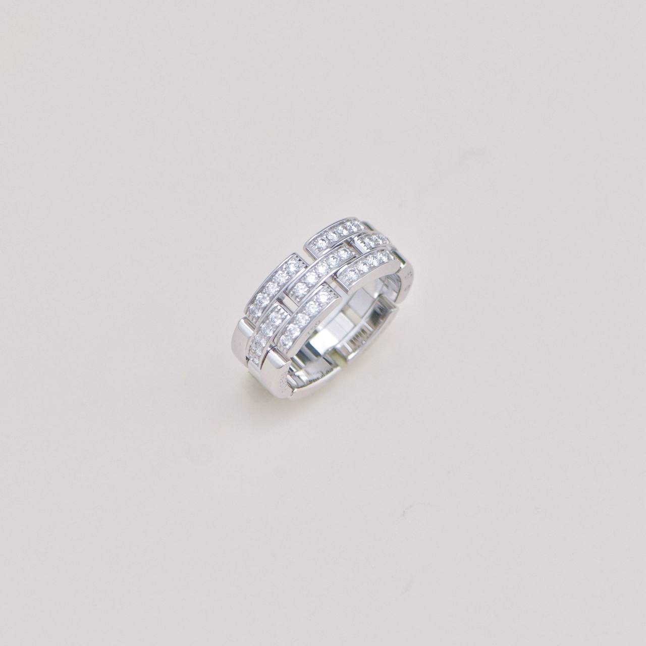 Authentic Preowned Full set Cartier Maillon Panthère Ring 3-row Pavé Diamond Size 57 in 18K White Gold.