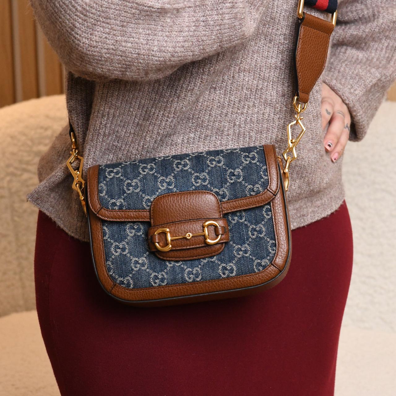 Gucci Horsebit 1955 Monogram Denim Crossbody Small Bag