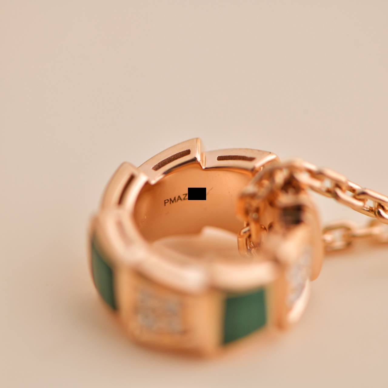 Bvlgari Serpenti Viper Diamond Pendant Necklace Malachite 18K Rose Gold