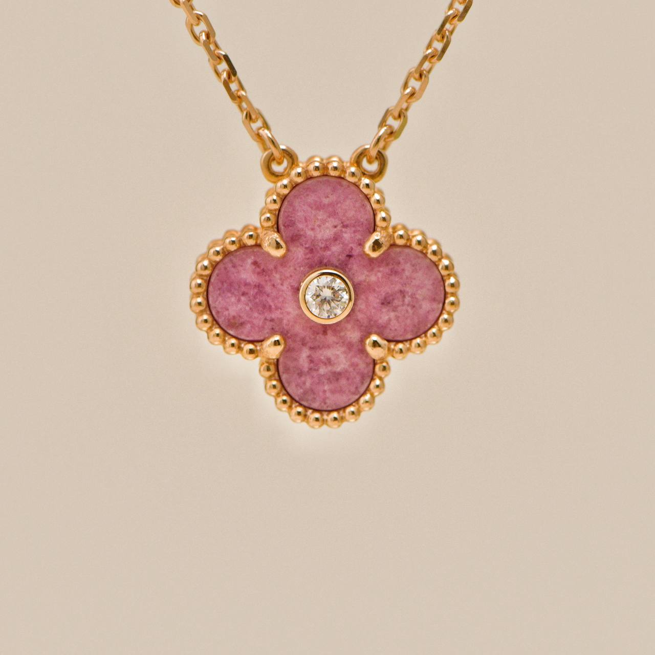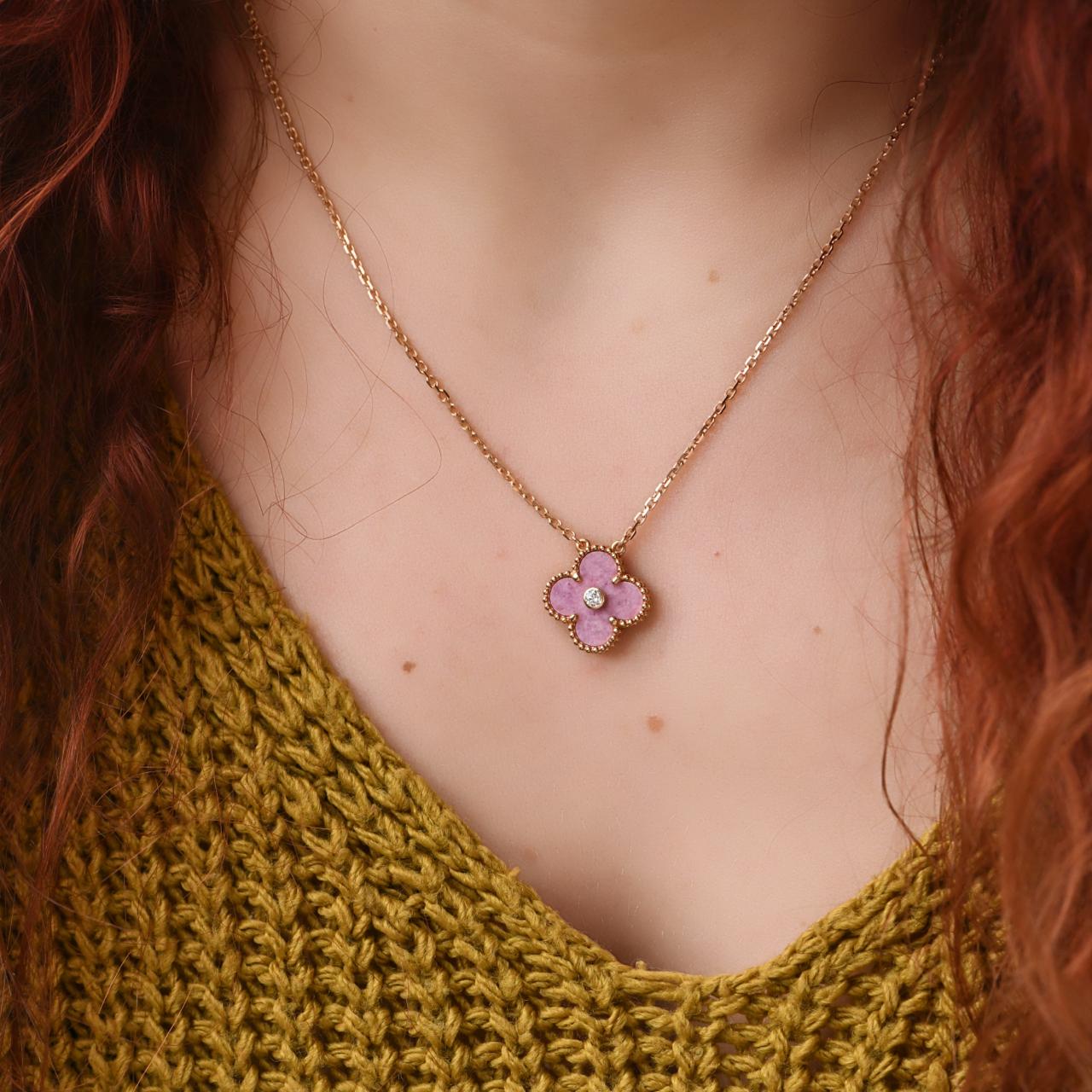 Van Cleef & Arpels Alhambra 2021 Holiday Pendant Rhodonite Diamond 18K Rose Gold