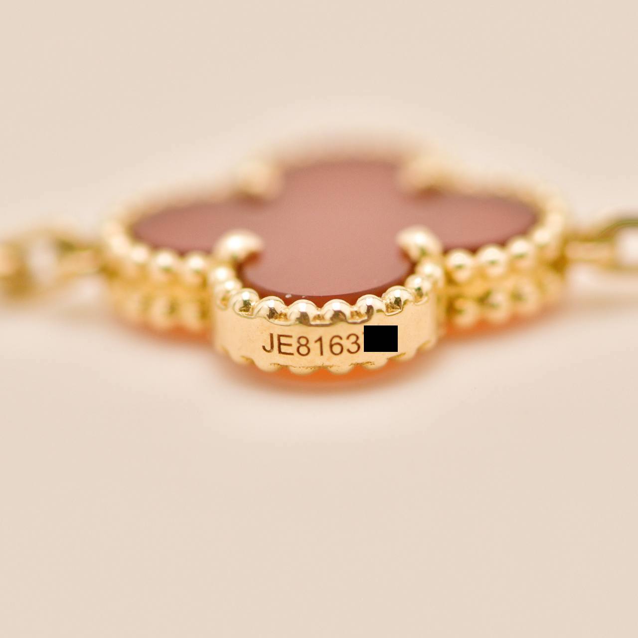 Authentic Preloved Full set Limited Edition Van Cleef Vintage Alhambra Bracelet -This rare Vintage Alhambra bracelet features rich carnelian motifs set against a distinctive hammered yellow gold finish. A highly collectable piece that is rarely seen on the secondary market. A true investment piece.