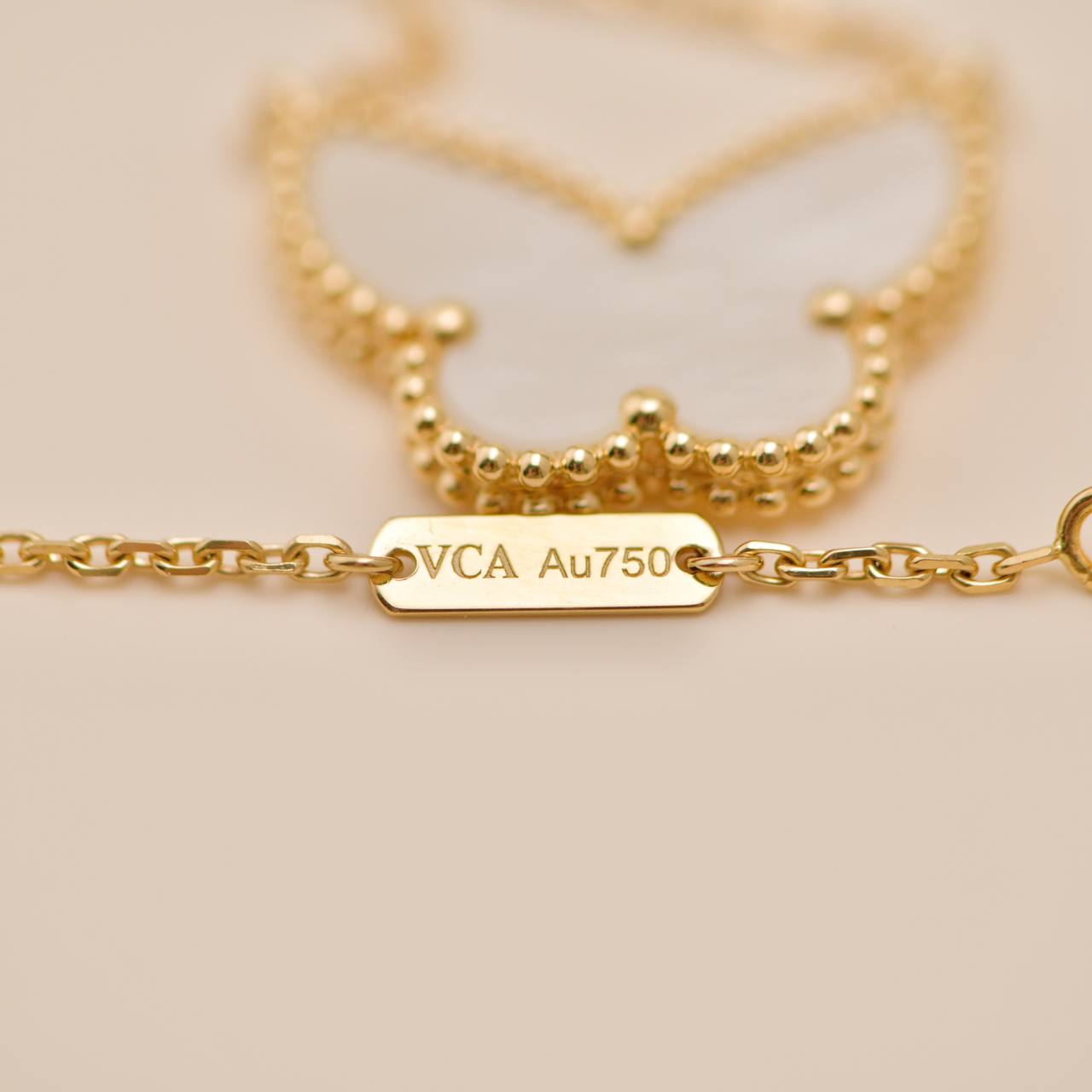 Van Cleef & Arpels Lucky Alhambra Butterfly Necklace Mother of Pearl 18K Yellow Gold