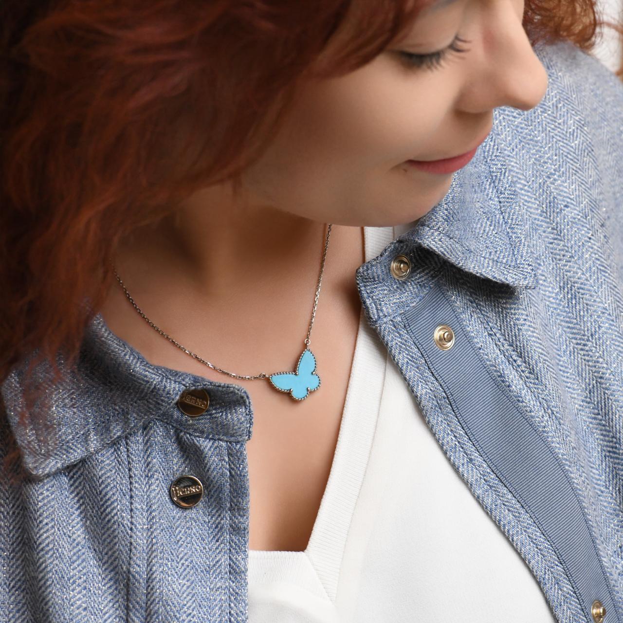 Van Cleef & Arpels Lucky Alhambra Turquoise Butterfly 18K White Gold Pendant Necklace