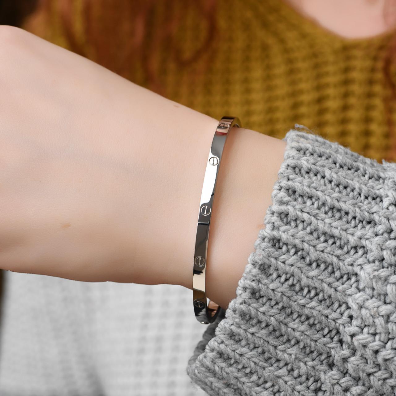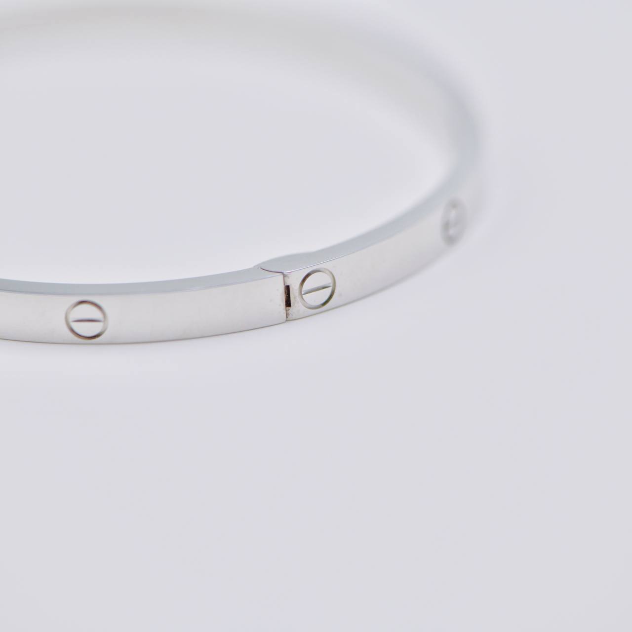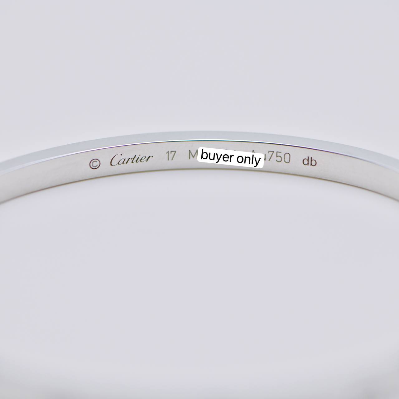 Preloved Authentic Full Set Cartier Love Bracelet Small Model 18K White Gold, Size 17. Perfect worn alone for a subtle statement or stacked with other bracelets.